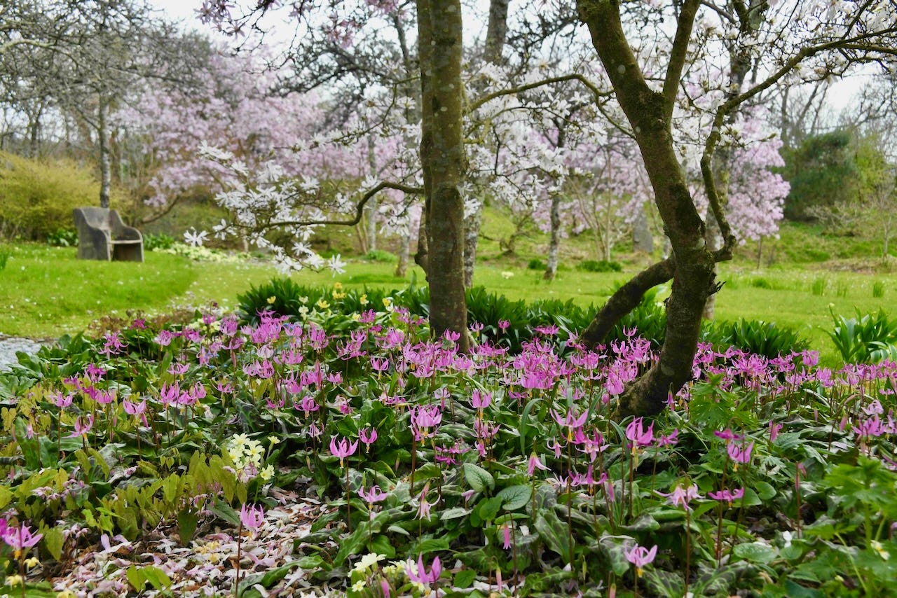 April is a fantastic time to visit! I have never seen so many Erythroniums in one place before, and the whole place was alight with spring blossom. Spring is also gardening time, and I had a look at all the work that Keith had in full swing, building his Canyons, a tribute garden for his beloved wife.